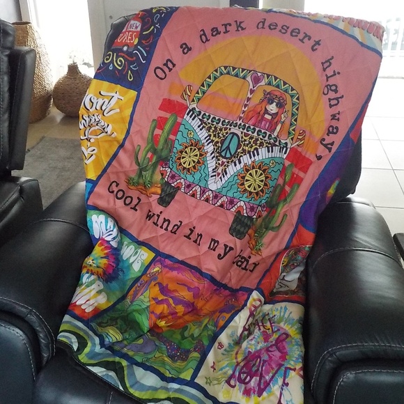 This throw is FABULOUS! It is in perfect condition, and it is everything I wanted! Seller a DREAM to work with. Throw got to me quickly, and it’ll be on my side of my bed tonight! This is just TOO FUN!