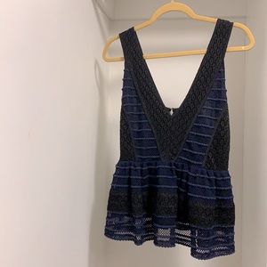 Chelsea 28 Navy and Black sleeveless peplum top