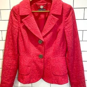 Anne Klein Classy Textured Two Button Bright Pink Blazer 100% Cotton Sz 4