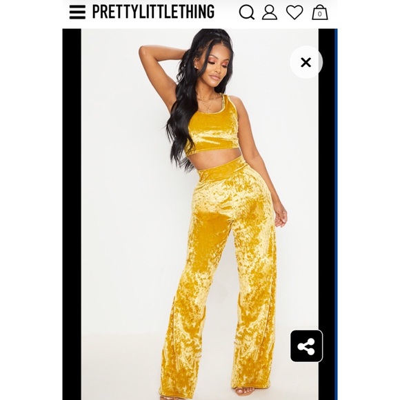 PrettyLittleThing Tops - ◾️Pretty Little Thing Mustard Velour Two Piece Set