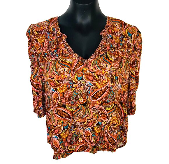 Packaged well. Shipped in an appropriate amount of time. Item as described beautiful colors in this blouse. Excellent value. Very happy with this transaction. Thank you