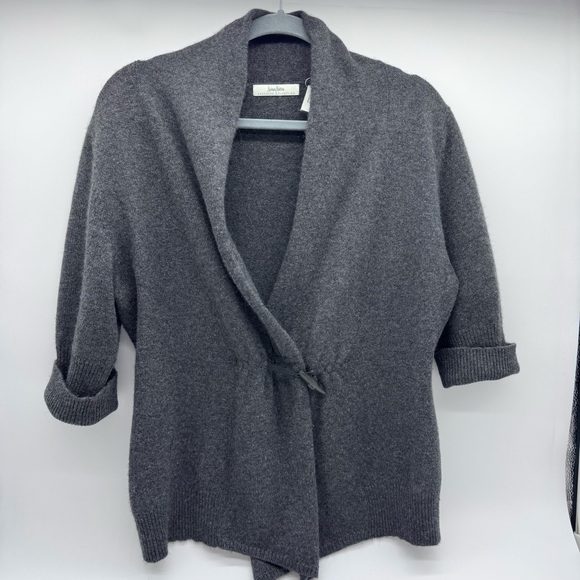 Fabulous cashmere wrap cardigan - wonderful shade of grey. I'm handy with sewing repairs (sometimes do them for friends) and will have this piece in tip-top shape in no time. TY for a great Posh Purchase!