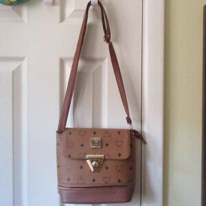 MCM Monogram Medium Flap Turnlock Bag Gold Hardware