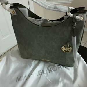 MICHAEL KORS Joan Large Logo Perforated Suede Shoulder Bag