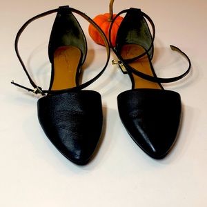 Black flats with small ankle buckle