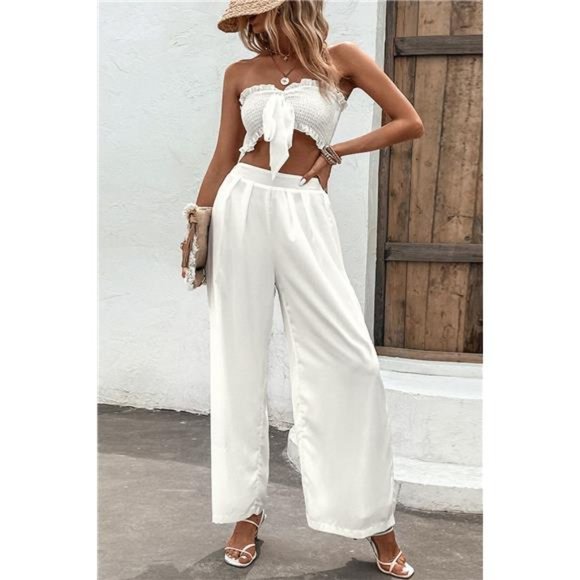 A Classy Chic Boutique Pants - Smocked Tube Top and Wide Leg Pants Set