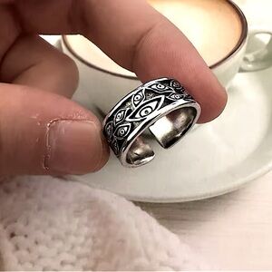 Retro devil silver eye ring