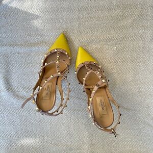Valentino Rockstud T-Strap Yellow Pump Heels