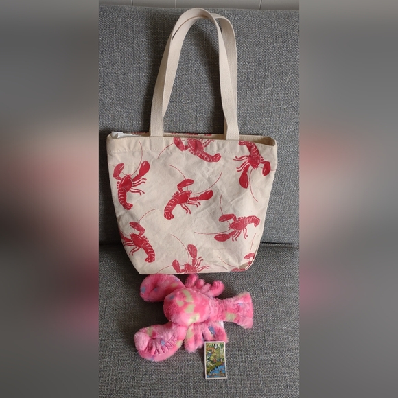 I love this tote and lil lobster so cute I like to thank the seller for the thank you note and gift very kind of you I love it exactly like the picture came in good time before winter storm I totally recommend this seller