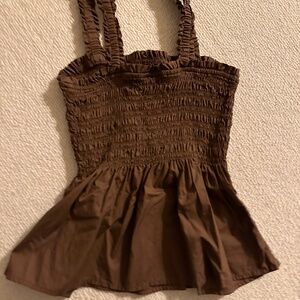 Gap brown ruched ruffle tank top size small