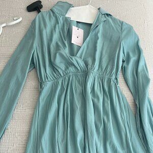 Chic Light Blue Long-Sleeve Dress