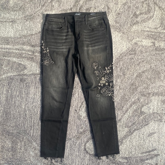 Great black jeans! I like the embroidery on them! They will go with anything! Arrived quick and in great shape!