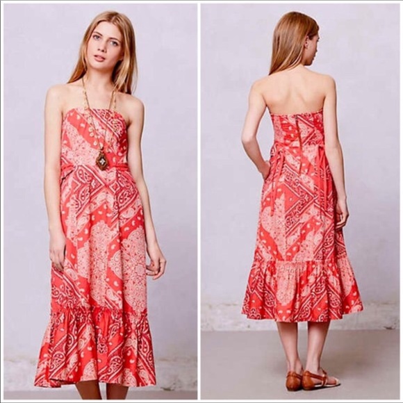 Anthropologie Dresses & Skirts - Holding Horses coral bandana strapless midi dress