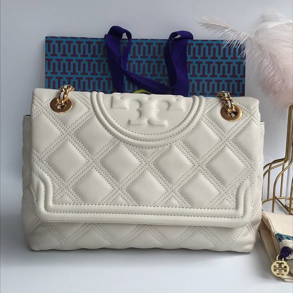 Exactly as described: brand new, never used, all tags attached, shoulder strap included. Gorgeous leather and suede sides flawless. I couldn't be more pleased with this purchase! Thank you!