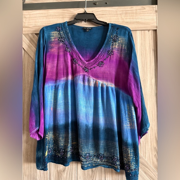 Love the vibrant blouse and it’s perfect for me to pop right over a sundress when it gets cold fast in Florida. Love it