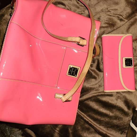 Just as described shipped so fast other things that I purchased at the same time were still en. Route, but her package arrived first! Wallet/bag match perfectly! Just as described beautiful pink patent leather. Love it!