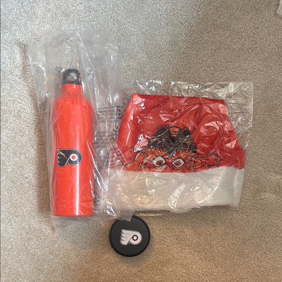 ⭐️⭐️⭐️⭐️⭐️ Amazing seller! My Philadelphia Flyers puck, water bottle, and Gritty Santa hat all arrived in perfect condition and exactly as described. She went above and beyond by including a custom Flyers shirt, which was such a thoughtful surprise. Everything was packaged well and shipped quickly. Highly recommend—thank you so much! 🧡🖤🏒