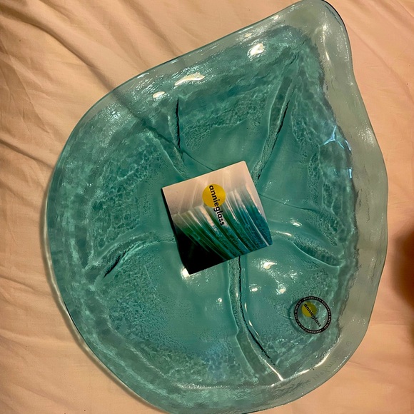 Beautiful glass bowl. Love it on my table. Seller great to deal with!