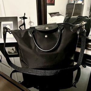 AUTHENTIC - BN Medium Black Longchamp Le Pliage Neo Nylon Travel Crossbody Bag