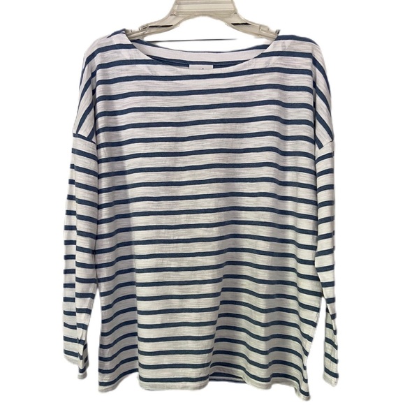 Very pretty blue striped boatneck top. Wonderful condition and great fit. This will be such a nice wardrobe staple.