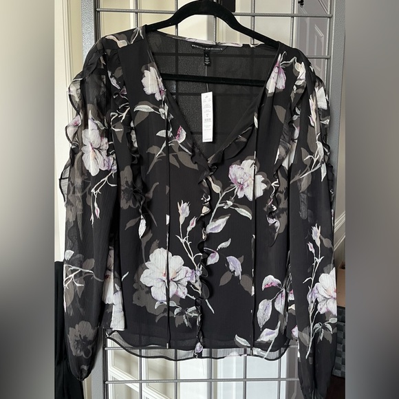 torrid Tops - Torrid Black and Purple Ruched Puff Sleeve Blouse 1X (14-16)