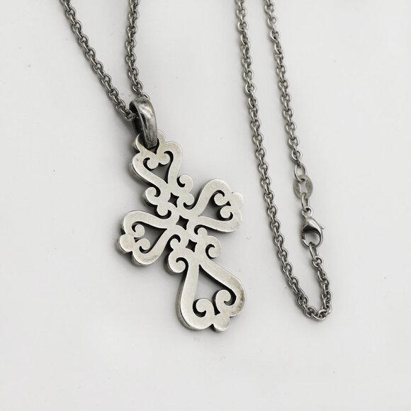Beautiful necklace. Looks new and shiny. Came in a blue and white ribboned gift box. Well wrapped in bubble wrap and crisp white tissue paper. Perfect.