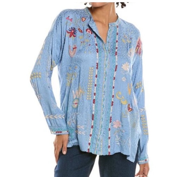 Beautiful blouse, better looking in person. It is a lovely shade of blue. Great price with fast delivery. I'm very happy. Many thanks!