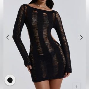 Jaded London Umbra Shredded Mini Dress Black XS