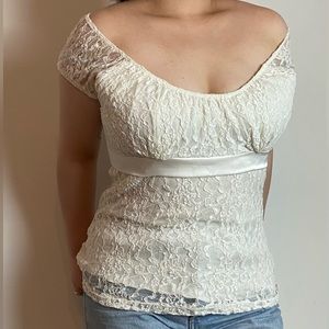 Lace detailed top with a silk ribbon tied in the back, perfect for picnic :3