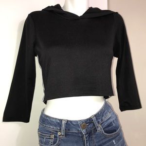 CooPerformance Black Cropped Silver Striped Hoodie