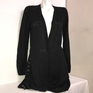 Cyrus Black Cutout Rayon Flyaway Cardigan Sweater