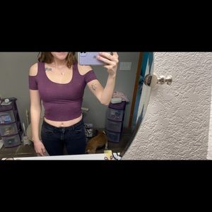 Purple cold shoulder crop top