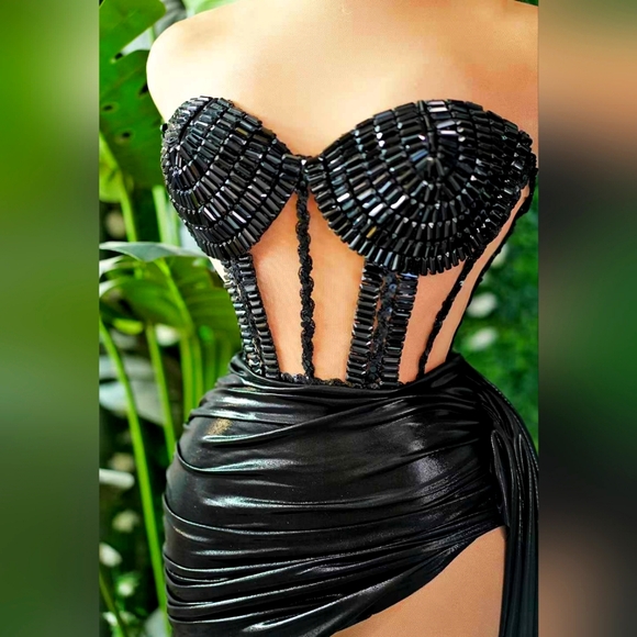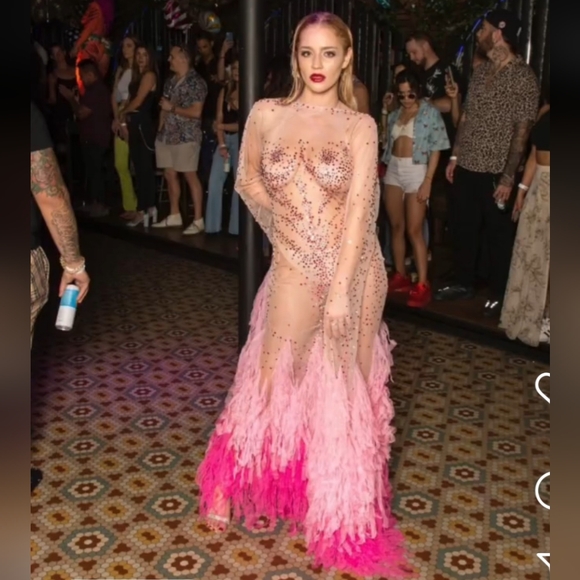 The dress runs very large which was upsetting and wasn’t exactly as pictured.It’s sleeves are not attached, almost like a very loose fitted bolero, for the quality of the rhinestones this was a steal but size does run large