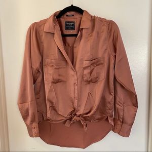 Dusty Pink Satin Button Up