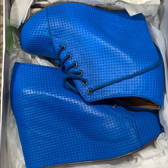 The shoes are beautiful and the color is gorgeous however a little disappointing that there are two small areas (one on each shoe) where the color is coming off. Other than that they are in perfect condition.
