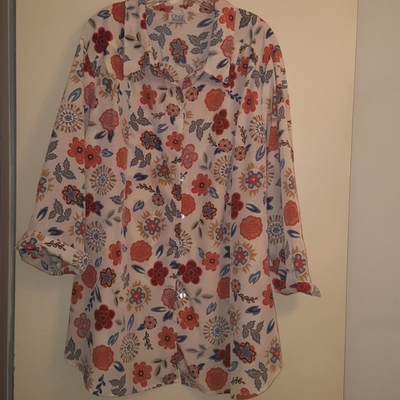 Well, this shirt looks brand new! It’s lovely – very colorful and happy and I even got new earrings to go with it! Thank you so much for selling it to me and for sending it so quickly! I appreciate your note!