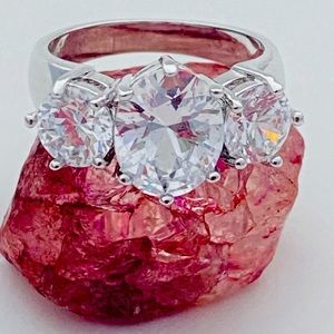 Sterling silver ‘circle’ band with clear pink/blue cubic zirconia. Size 9.5.