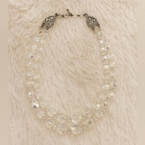 Chic 60s Coro signed two strand crystal Austrian Aurora Borealis clear necklace