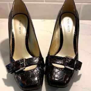 Shiny Bronze, Vegan, Faux Snakeskin, Strappy, Heels .