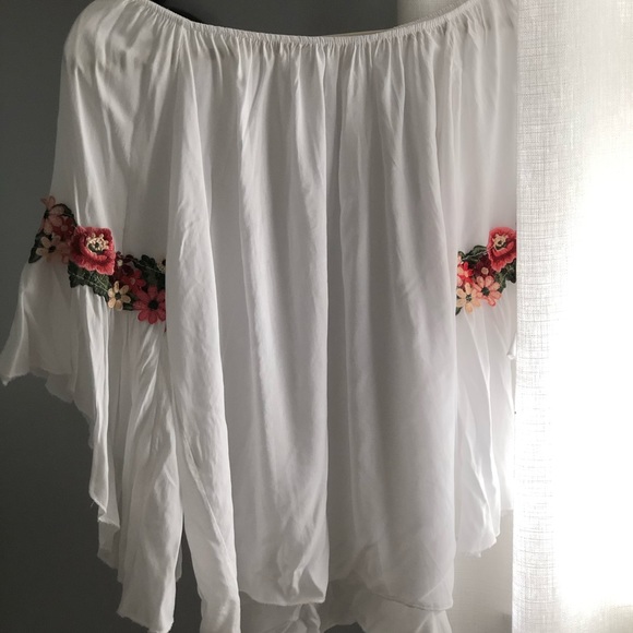 Sweaters - Boho chic printed kimono with mini pom pom trim