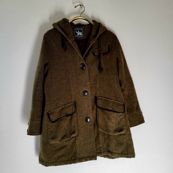 Exactly as described. Wool coat size L in great shape. Package arrived right on time.