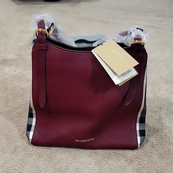 Beautiful, soft Burberry mahogany red bag with signature panels. Love the clasp, magnetic close, and various pockets. So glad I purchased this bag. Many thanks!!