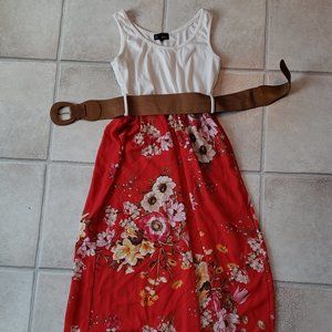 Ladies Light Day Dress w/ Mid-Belt & Flowy Skirt