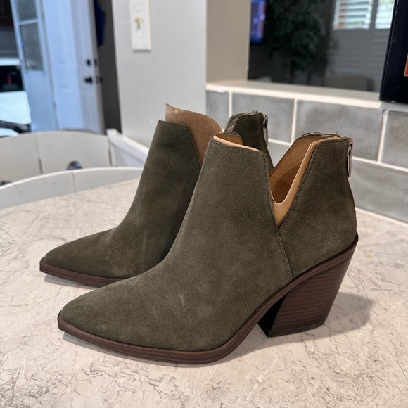 These beautiful suede booties arrived quickly and were in flawless, just as described condition. Thank you!