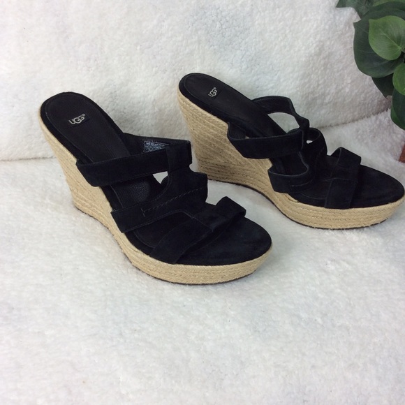 UGG Shoes - Ugg Black Suede Basket Weave Wedges Size 11