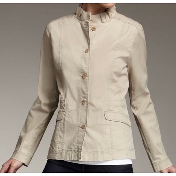 Love my new Eileen Fisher jacket! It has a great ruffled stand up collar & the fabric is nice & smooth. Can’t wait to wear it! I am very pleased with my purchase!