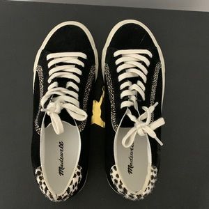 Madewell Sidewalk Low Top Sneakers Black Suede Animal Print