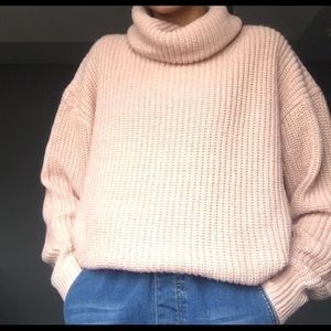 Oversized Warm Turtleneck Pink Knit Sweater