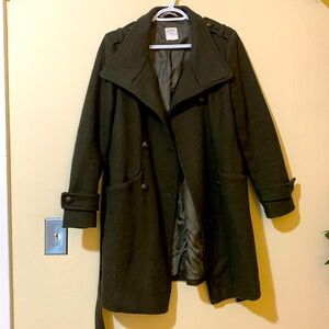Mid-length wool coat, dark green