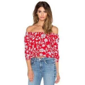Faithfull Red Floral Crop Blouse Size XS